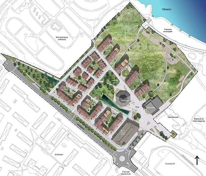 Framnäs är Lidköpings mest spännande område och har historiskt varit centrum för friluftsliv och rekreation. Här sker just nu en stadsomvandling som innebär ett stort lyft för staden och våra invånare. En strandpark, strandpromenad, badstrand och utvecklad småbåtshamn har precis invigts i området. En omfattande badanläggning med såväl inomhus- som utomhusbassänger planeras också på platsen samtidigt som ett bostadsområde ska växa fram och koppla ihop stadsdelen med innerstaden. Detaljplanen för bostäder har varit ute på granskning och planeras att antas under 2026 och byggrätterna kommer därefter säljas genom främst markanvisningstävlingar.