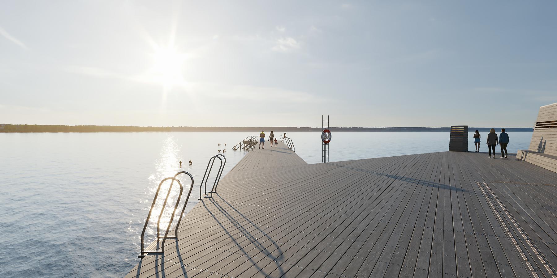 I februari månad 2022 tog kommunfullmäktige beslut om start av genomförande och tisdag 22 mars 2022 sattes spaden i sanden för Lidköpings nya strandpromenad med vattenpark, långbrygga och ombyggd pir.