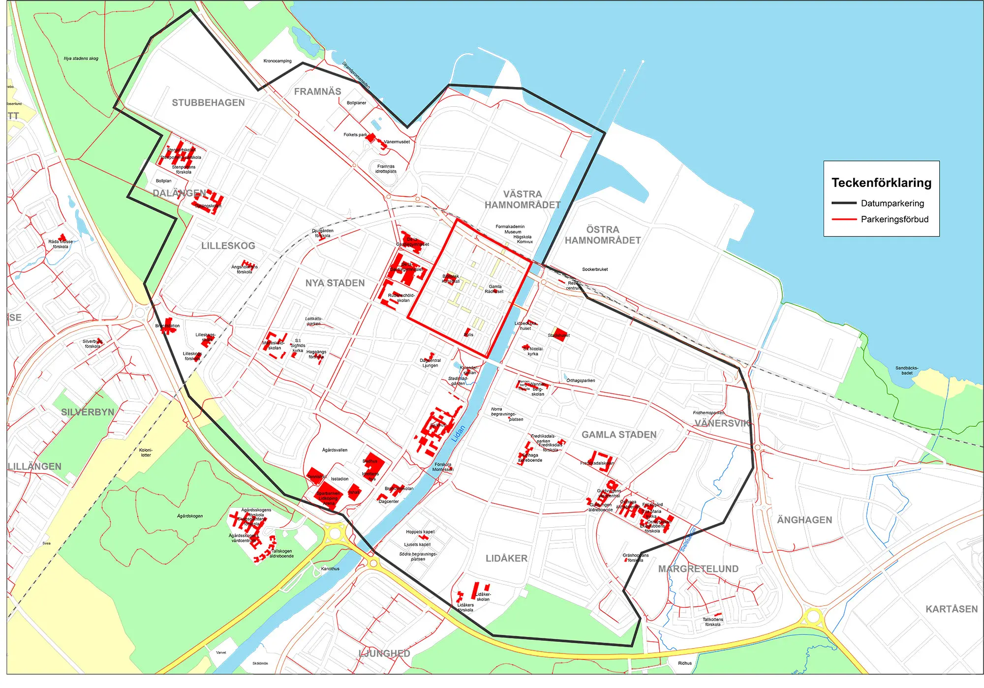 Riktlinjen gäller hela Lidköpings kommun, för alla kommunala parkeringar. Inte bara på gator och de som ses som offentliga parkeringsytor, exempelvis Åhlénsparkeringen, utan även på kommunens fastigheter, såsom skolor etc.