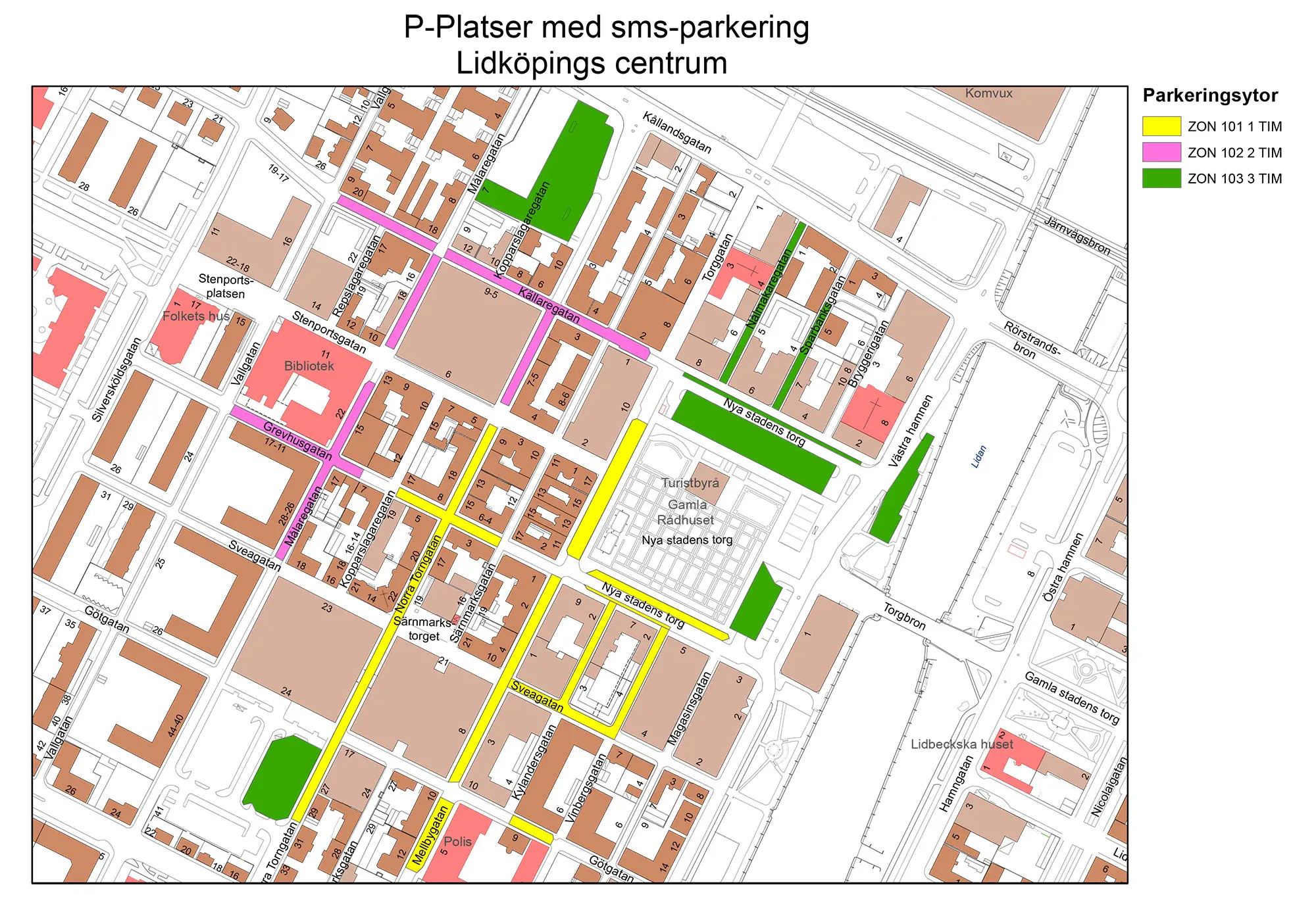 Inom Lidköpings centrum finns 2 400 allmänna parkeringsplatser. På många av dem kan du parkera gratis men på 466 stycken är det avgift.
