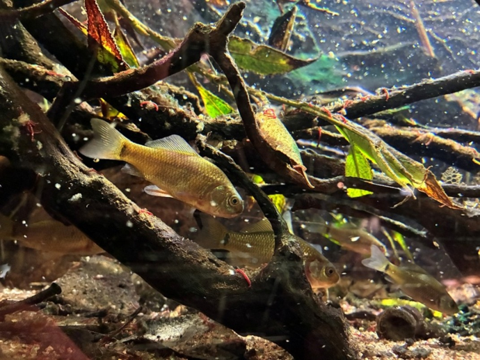I första hand behåller vi de ungar som föds i akvarierna. På så sätt kan vi hålla egna populationer av arter utan att behöva köpa in nya.