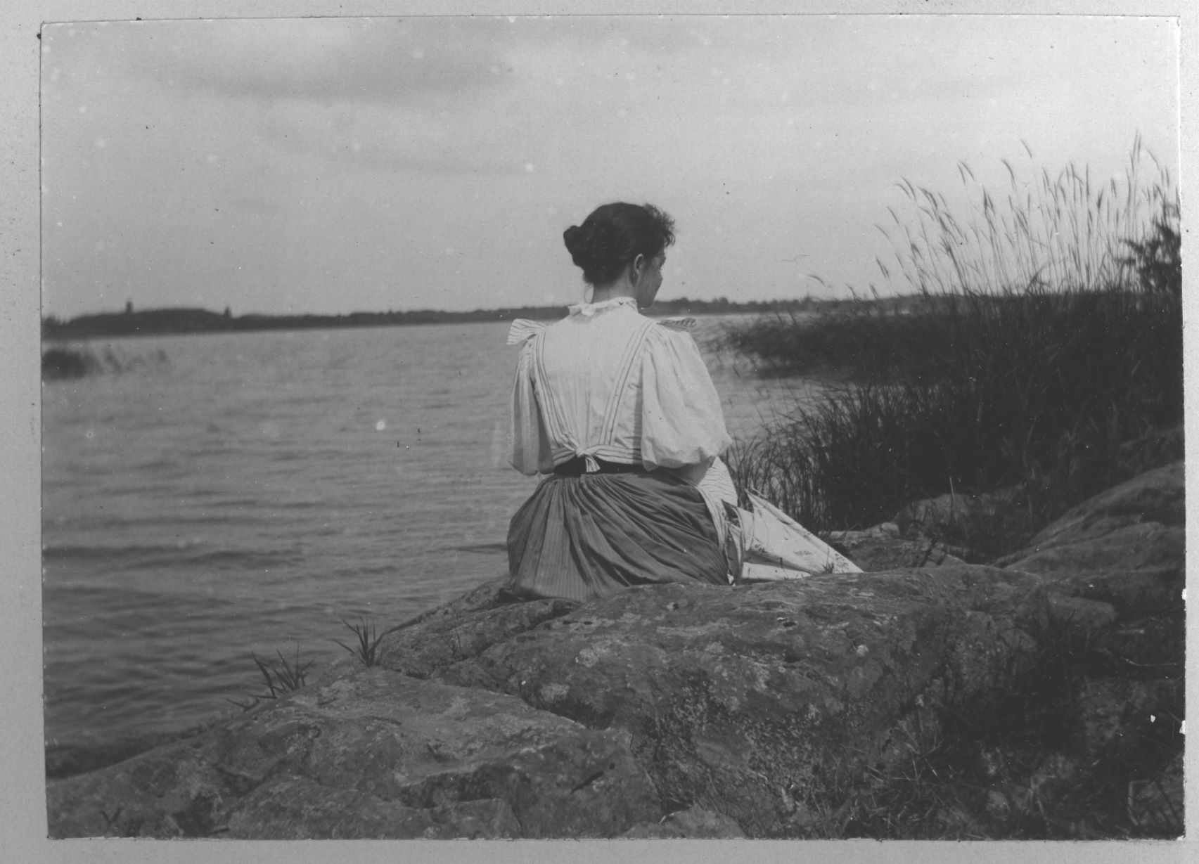Thanks to the lens of photographer Arthur Ahlberg we see the back of Sonja. She is looking at Lake Vänern from Ullersund, approximately around the year 1900. Arthur and Sonja were half siblings, and the collection of the Museum of Lake Vänern hosts several photos where Arthur has portrayed the Ahlberg family.